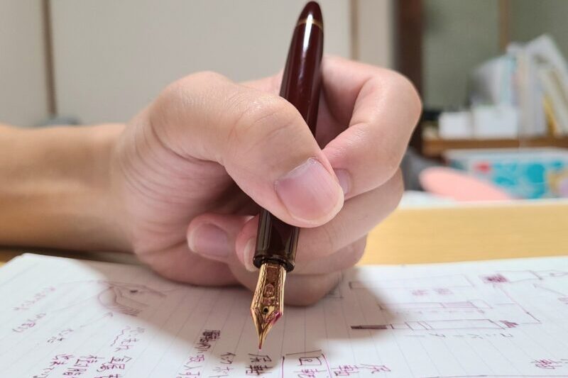 万年筆は、ほとんど筆圧をかけずに書けます。そのため、長時間書いても疲れにくいのが特徴です。