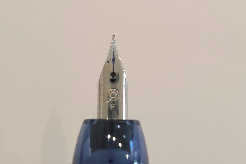 ペン先はプラチナ万年筆の「P」、字幅の細字を表す「F」と刻印されています。