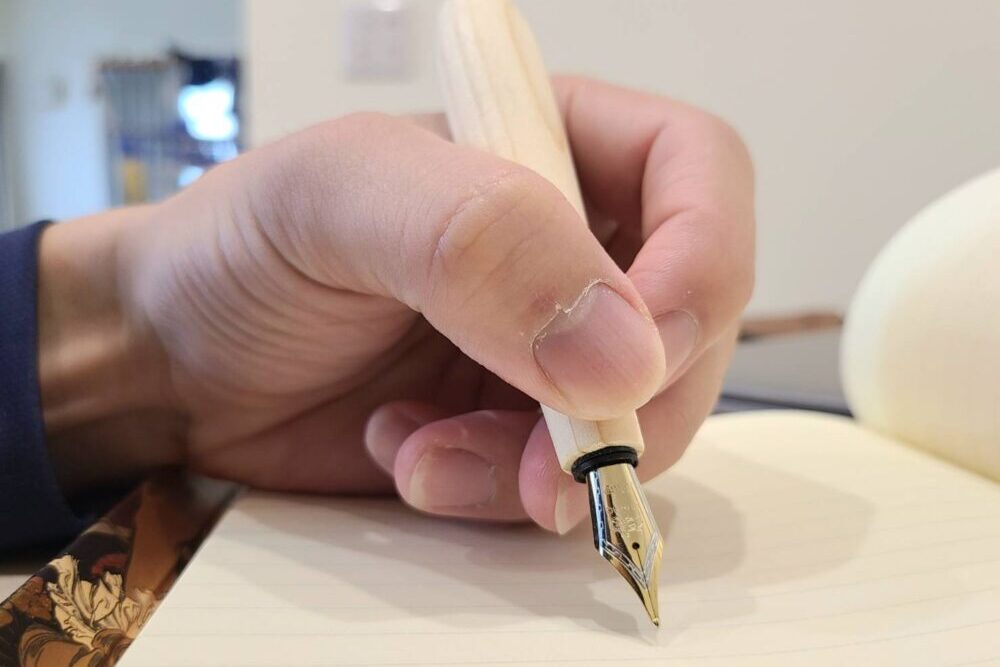ブログ内で万年筆で字を書いている様子を撮影したときのものです。