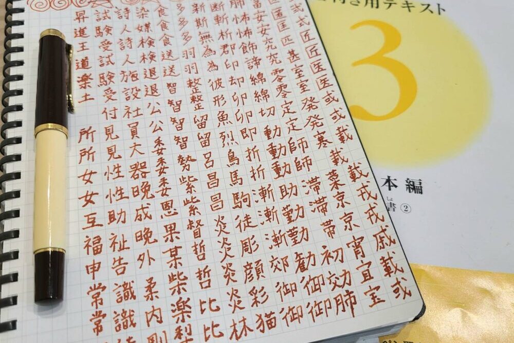 漢字(楷書)は地道に正しい漢字のバランスを覚えて、それを自分のペンで体現するんですが…。