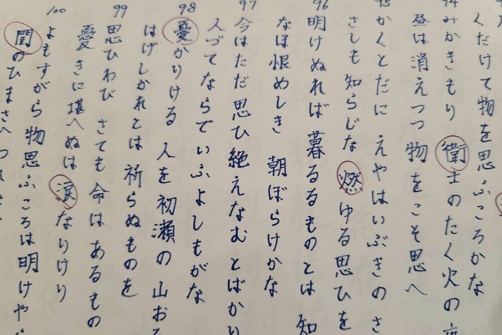 あんまり長い文章だと疲れそうだったので、百人一首にしました。