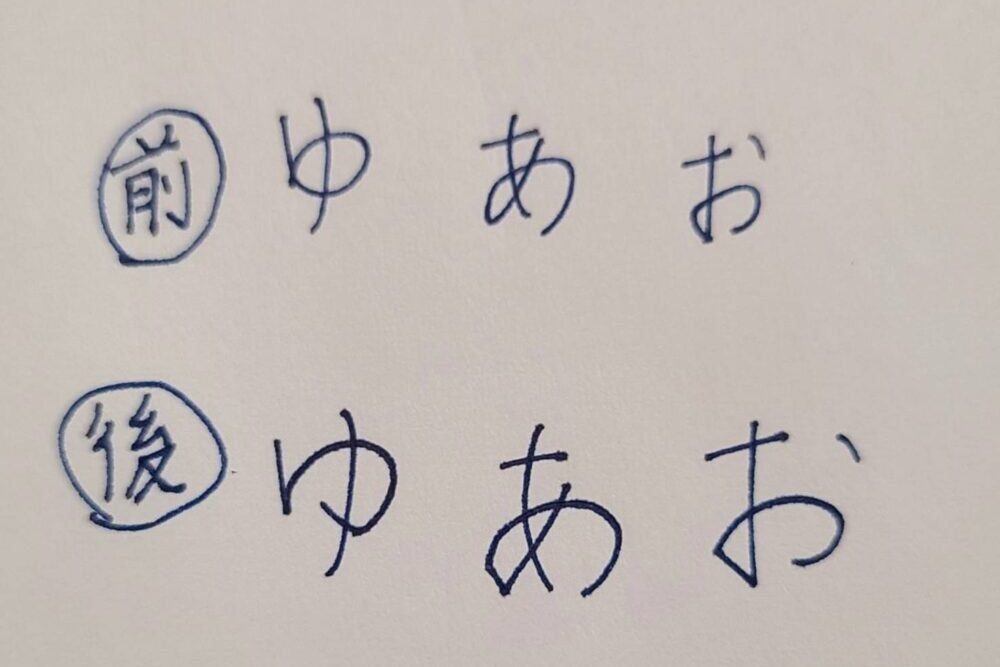 その影響で、小さい字しか書けず、大きい字を書くと途端にバランスが崩れてしまっていました。