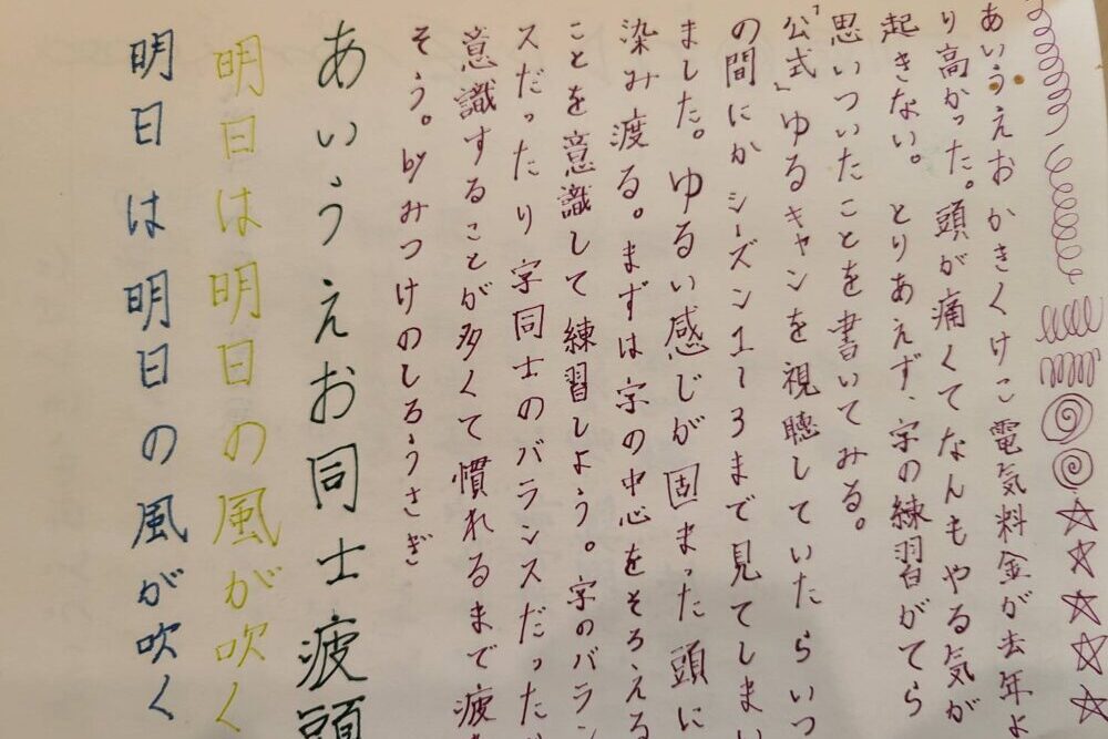 相変わらず文章が波打ってしまいますが、書いている字の1つ1つが見やすくなったので結果的に全体が見やすくなったのかなと思っています。